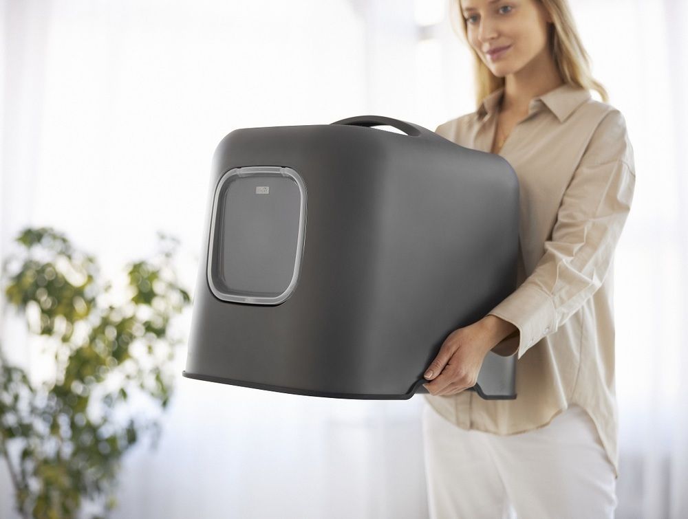 Toaleta pro kočku BIALA z recyklovaného plastu. – moderní a funkční design – dvířka s magnetem zajistí samouzavírací systém – pohodlný vstup pro kočku – Odnímatelný horní kryt s rukojetí – kvalitní provedení od značky Rotho