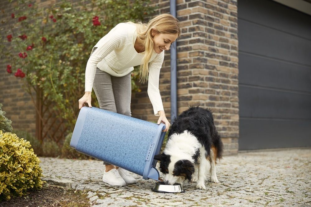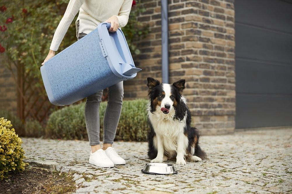 Úložný box na suché krmivo. Součástí je i praktická lopatka. Vyklápěcí dávkovač ve víku – pro jednoduché dávkování a odsypávání krmiva. Spolehlivé vzduchotěsné uzavření víka díky bočním klipsům. Ergonomický tvar umožňuje pohodlné uchopení. Vyrobeno z plastu vhodného pro potraviny (PP). Pěkný moderní design. Kvalita od švýcarské značky Rotho.