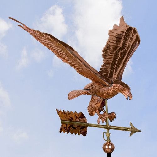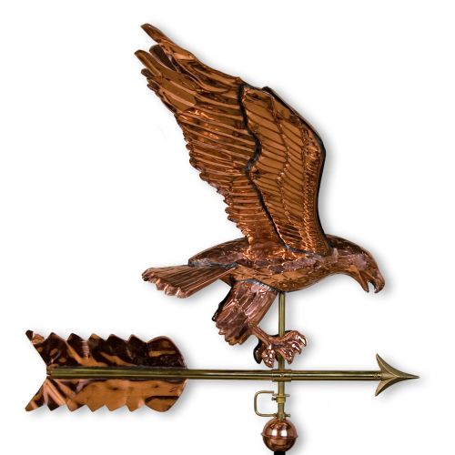 Tento orel nejen plaší dravé ptáky z vaší střechy a zabraňuje chovu holubů, ale můžete sledovat směr větru. Tento impozantní létající orel je vyrobený z nejkvalitnější mědi je ručně vyráběný. Orlík je 3 dimenzionální. Orlí korouhev můžete připevnit jak na plochou, tak na šikmou střechu. Dodané šrouby a otvory v základně zajišťují snadnou instalaci. Samotná montáž je také snadná a rychlá. K dispozici je krátký průvodce.