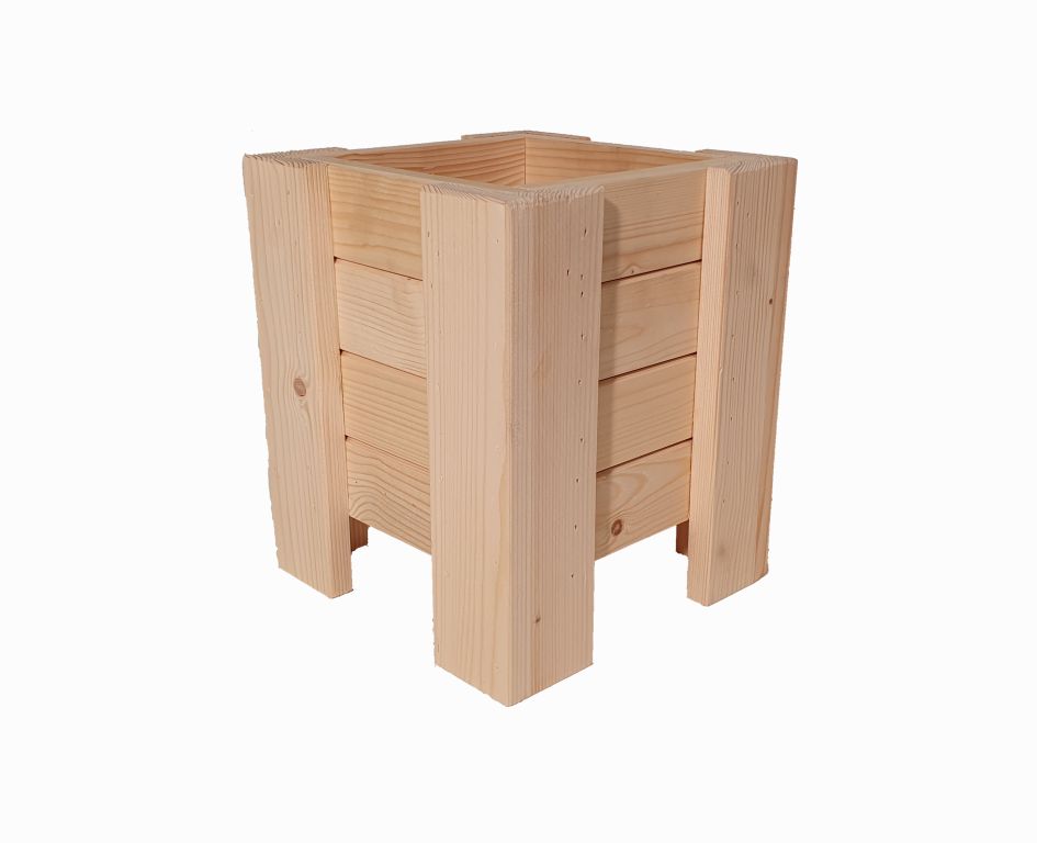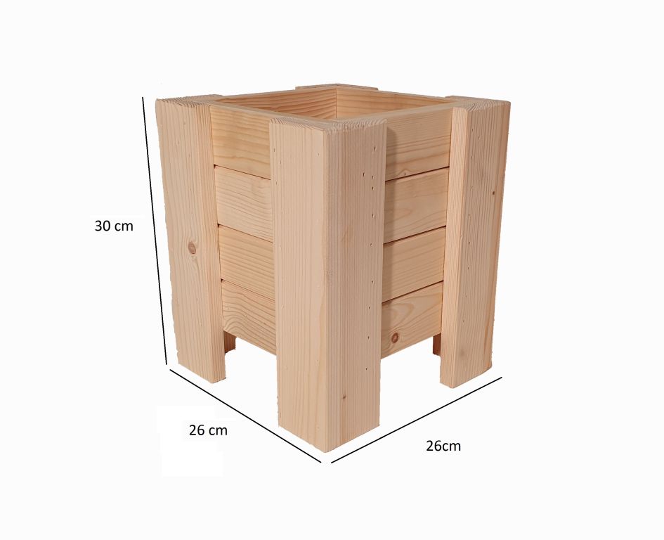 Dřevěný květináč vyrobený ze smrkového nebo borového dřeva je bez povrchové úpravy. Dodáván je smontovaný,takže nepotřebujete žádné nářadí. Dřevo je přírodní materiál, který může praskat a pracovat, tomu nelze zabránit. Výrobek není určen na venkovní použití v zimním období, výrazně se tím zkracuje životnost.
