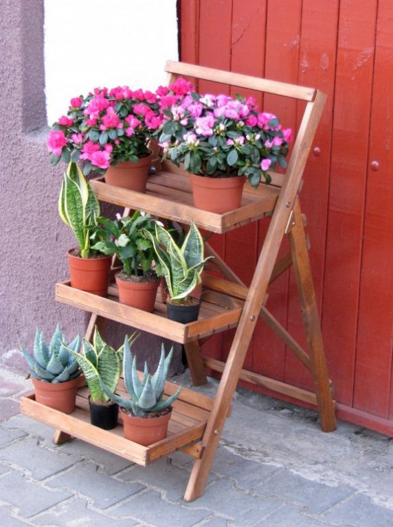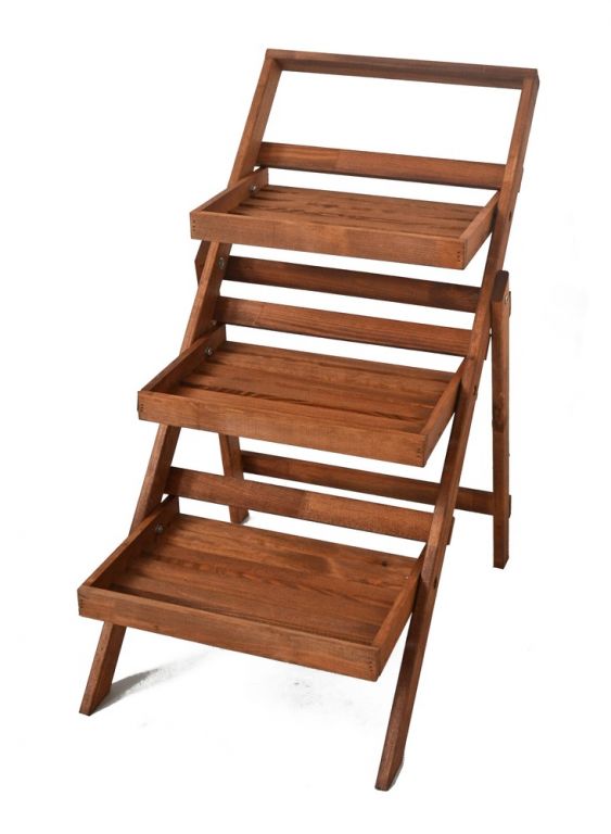 Dřevěný schůdkový květináč – v hnědé barvě.