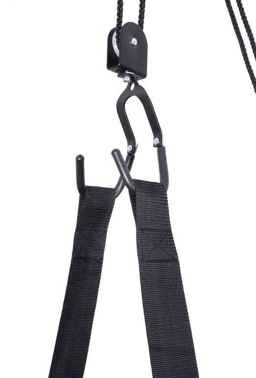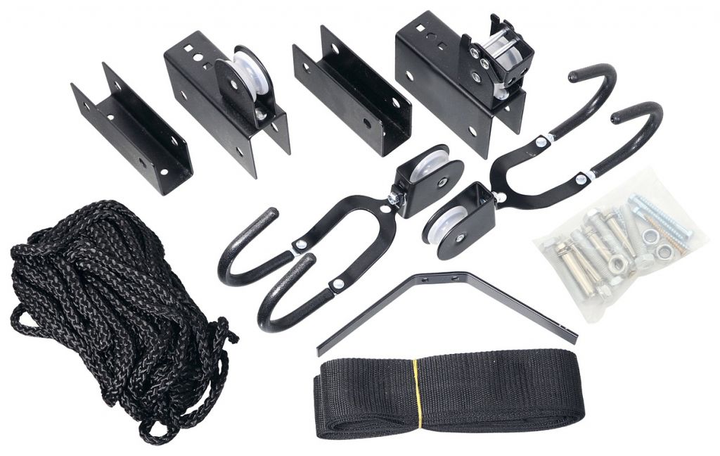 Držák funguje na principu kladkostroje a dokáže snadno zvednout střešní boxy, žebříky, lyže, jízdní kola, kajaky a další obdobné rozměrné předměty až do váhy 52 kg a umístit je pod strop místnosti s maximální výškou 4 m. Montáž držáku se provádí do pevných stropů pomocí šroubů a hmoždinek. Pomocí lana je možné lehce manipulovat se zavěšeným předmětem. Zařízení je vybaveno brzdou, která zabraňuje proklouznutí lana a znemožňuje pád zavěšeného předmětu. Balení navíc obsahuje popruh pro bezpečné uchycení předmětů různých typů a tvarů.
