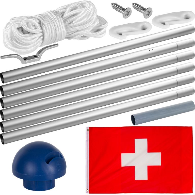 Stožár FLAGMASTER® vyrobený z hliníku je ideálním upoutávkou do vaší zahrady. Vlajkový stožár se skládá ze šesti zásuvných prvků a snadno se instaluje – stačí jednoduše zasunout do sebe a vložit do držáku, který je součástí dodávky a který je také vhodný k zabetonování. Celková délka včetně držáku je přibližně 6,5 m. Díky zásuvnému systému se také může měnit výška stožáru: 210 cm, 310 cm, 410 cm, 510 cm nebo 610 cm od.