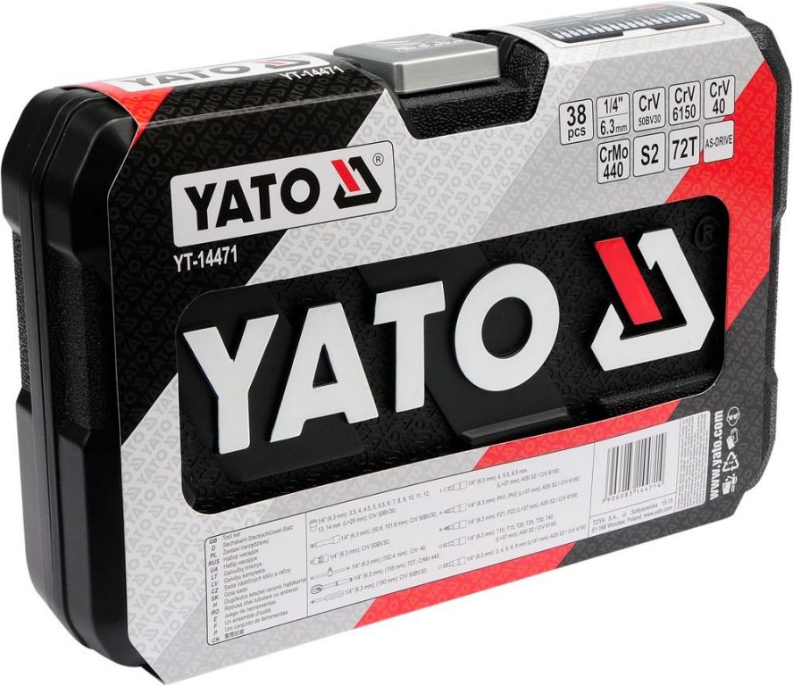 Gola sada renomované značky Yato obsahuje 38 kusů nářadí. V praktickém kufříku z odolného plastu. Ráčna s ergonomickou rukojetí s protiskluzovým povrchem pro snazší manipulaci. Všechny kovové díly z vysoce kvalitní oceli. Kufřík vám skvěle poslouží v profesionální dílně, ale i v soukromé garáži.
