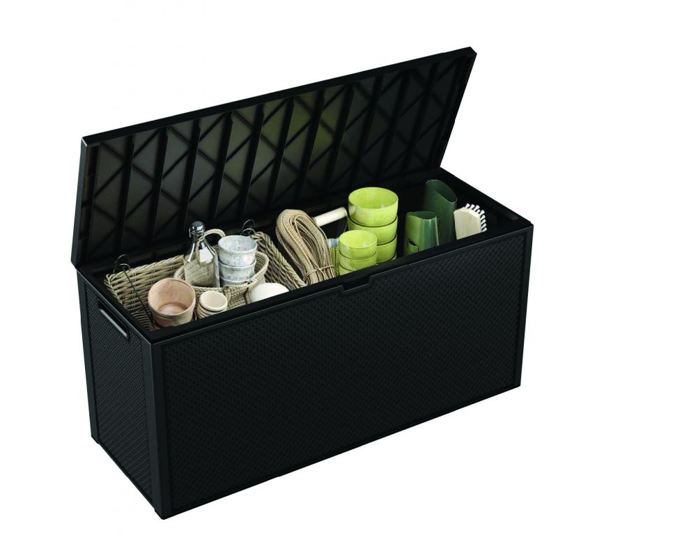 Nemáte dostatek úložného prostoru pro věci na vaší zahradě, terase nebo v pergole? Povaluje se vám nářadí, polštáře ze zahradního nábytku nebo dětské hračky všude kolem? Zahradní box Keter Emily v grafitové barvě vyřeší váš problém. Potěší svým jednoduchým a nenápadným vzhledem, který připomíná dřevěnou či ratanovou truhlu, a díky neutrální barvě se bude hodit téměř do jakéhokoliv exteriéru i interiéru. Úložný box nabízí spoustu místa, proto se do něj vejde spousta věcí. Využijte prostor, který vám poskytne, nebo ho použijte jen jako designový doplněk. Box je zároveň lehký a má kolečka, díky kterým ho snadno kamkoliv přemístíte. Zároveň krásně ladí s dalším nábytkem od značky Keter.