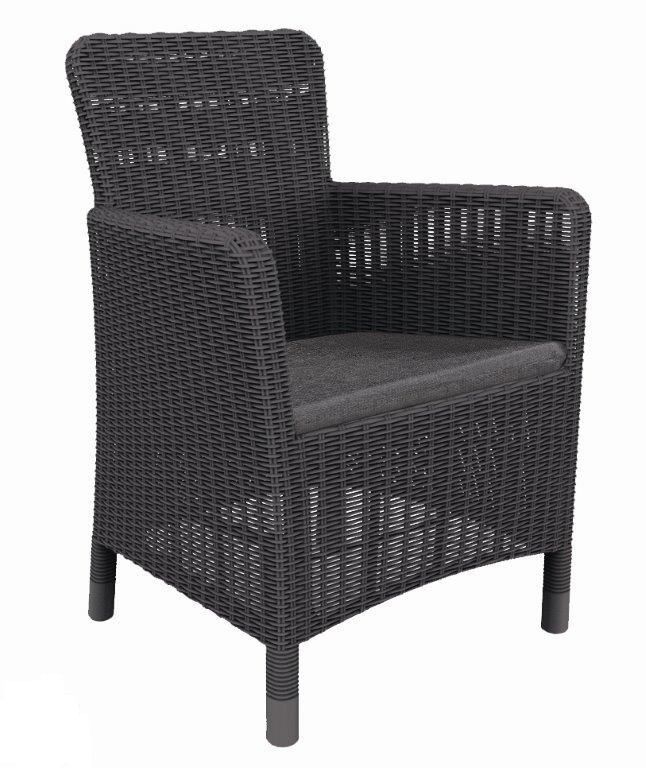 Zaoblené tvary opěradla, ručních opěrek a pohodlná měkká sedací podložka poskytují opravdu komfortní posezení a příjemný relax, který si rychle oblíbíte. Design umělého pleteného ratanu zaujme na první pohled a křeslo díky svému vzhledu zapadne dokonale do každého interiéru i venkovních prostor. Materiál křesla je odolný vůči vlhkosti a UV záření, takže se nemusíte bát nechávat křeslo venku třeba celou sezónu. Barva nevybledne a umělý materiál nepodléhá zkáze hnilobou jako přírodní materiály.
