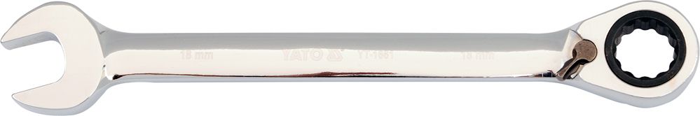Očkoplochý klíč s dvanáctihranným profilem opatřeným ráčnou s jemným 72 zubým chodem a přepínačem levého/pravého chodu.