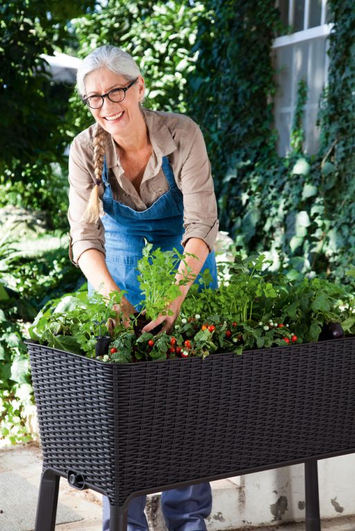 EASY GROW je vysoký květináč umístěn na pevných nohách. Praktická, zajímavá a především trvanlivá konstrukce umožňuje kultivaci různých rostlin, květin, bylin, stejně jako zeleniny. Indikátor hladiny vody zabudovaný do vany květináče, vám umožňuje řídit správnou úroveň zavlažování, chránící rostliny před nadměrným zaléváním. Bude fungovat a vypadat dobře v domácnosti, na zahradě, balkoně nebo terase.