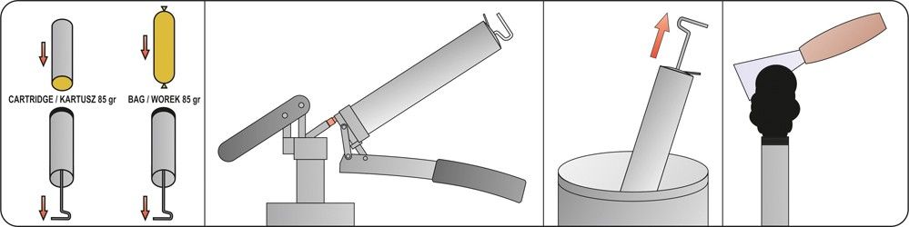 Maznice páková, pro klasické kartuše 400 g, nebo PVC sáček 500 ml. Maznice je opatřena plastovou, ohebnou vývodkou a dosahuje vytlačovacího tlaku pracovního tlaku 42 Mpa a max. tlaku 70 MPa (310bar). Páka je délkově nastavitelná v rozmezí 200 – 300 mm.