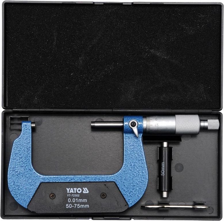 Mechanický mikrometr pro přesné měření. Precizní zařízení s přesností na 0,01 mm (při pracovní teplotě 5 – 40 °C) rychle a snadně změří vnější i vnitřní délky.