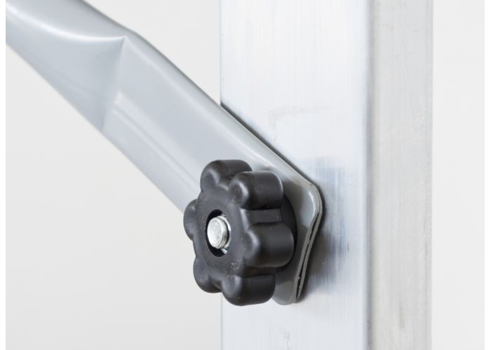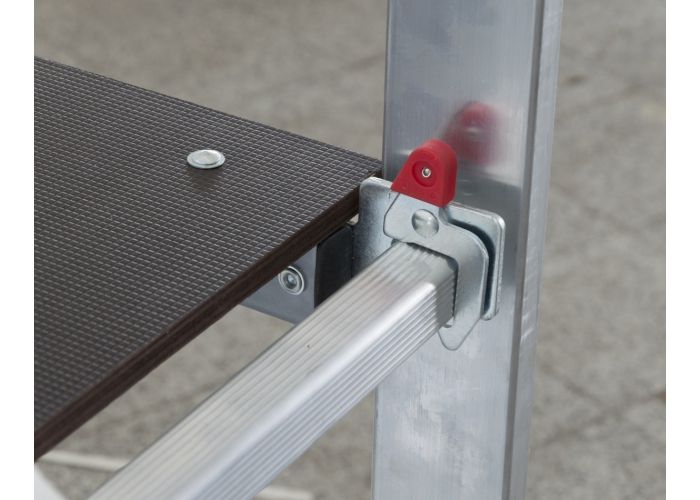 Toto hliníkové lešení můžete postavit i na schodech, díky regulaci výšky po příčkách. Je stabilní a díky svým rozměrům je vhodné i pro použití v interiéru, například při malování, které na klasických štaflích není příliš pohodlné.