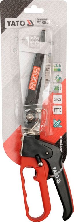 Nůžky na trávu o celkové délce 310 mm. 8 pozic nastavení. Hlavice otočná o 360 stupňů. Ostří potažené PTFE. Rukojeti opatřeny protiskluzovou ochranou.