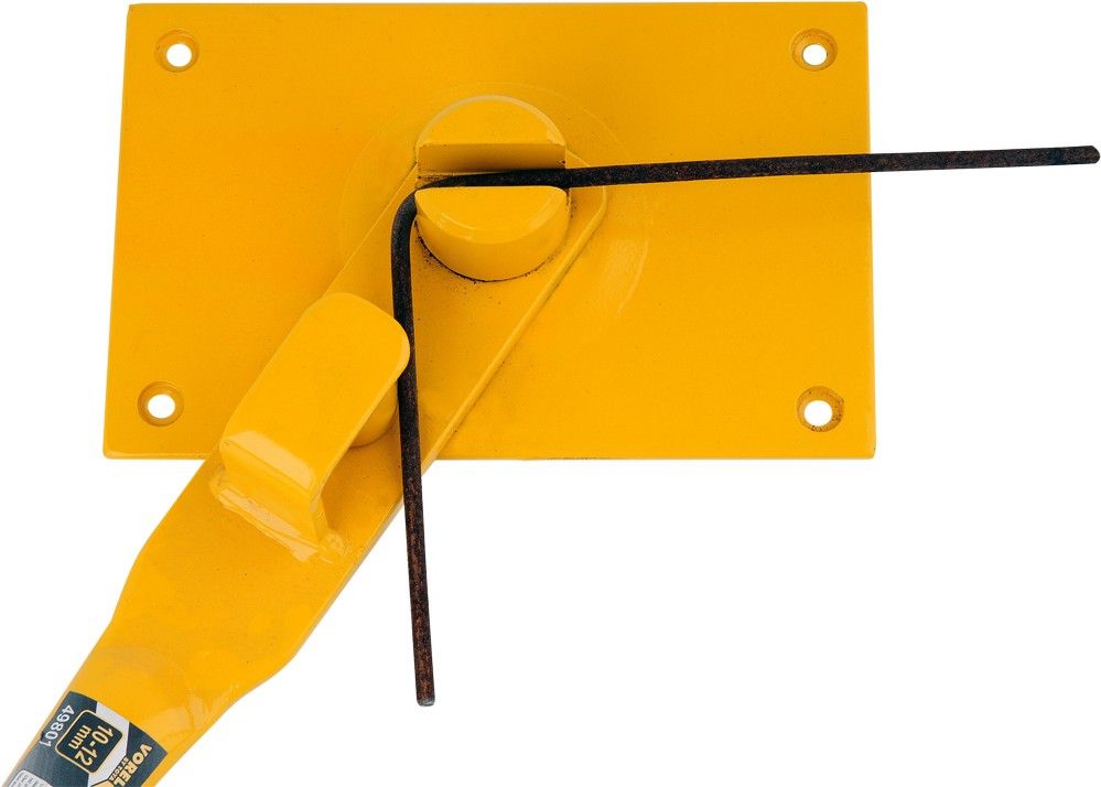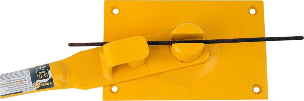 Ohýbačka je vyrobena z vysoce pevné oceli a je určena pro ohýbání třmínků a výztužných tyčí (hladkých a žebrovaných). Odolná základna a rameno o průměru 34 mm umožňují bezproblémové ohýbání tyčí 10 až 12 mm.