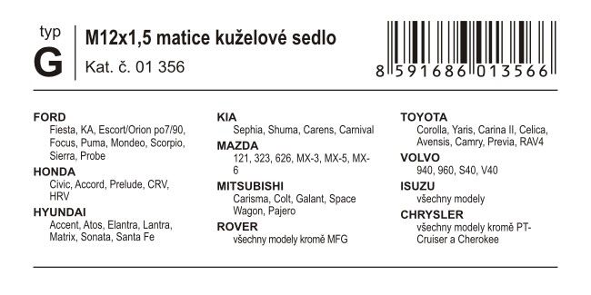 Pojistné matice kol G M12x1,50 kuželové sedlo