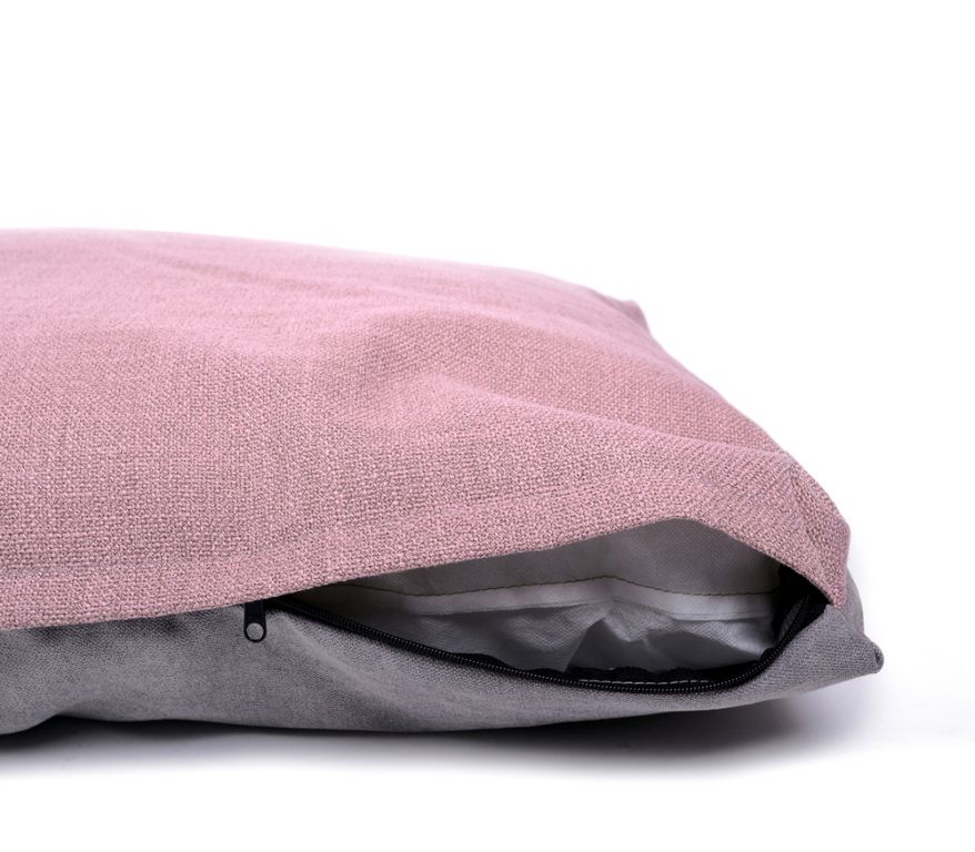 Luxusní oboustranný polštář pro psy. Z jedné strany odolná a pevná tkanina v růžové barvě. Druhá strana polštáře je z příjemné šedé látky. Polštář je opatřen zipem. Lze prát v ruce nebo v pračce na šetrný program, maximálně 30° C. Nečistit chemicky, nesušit v sušičce.