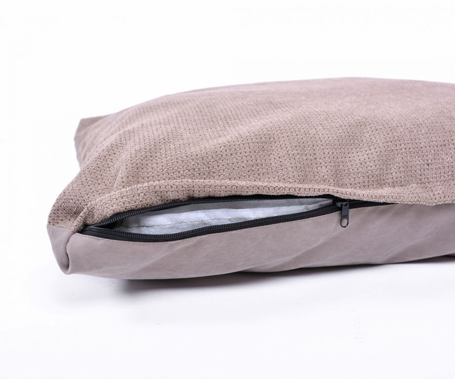 Luxusní oboustranný polštář pro psy. Kombinace dvou béžových látek. Obě látky jsou velmi příjemné, pevné a odolné. Polštář je opatřen zipem. Lze prát v ruce nebo v pračce na šetrný program, maximálně 30° C. Nečistit chemicky, nesušit v sušičce.