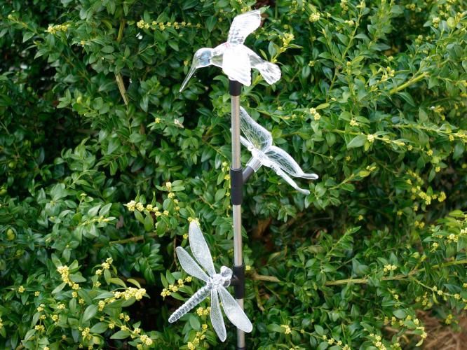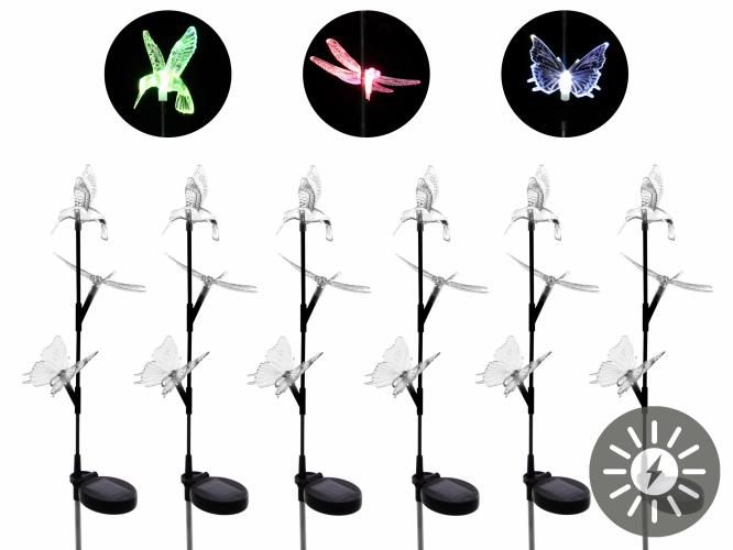 Tyto krásné originální LED světla propůjčí vaší zahradě šarmantní kouzlo. Skvěle se hodí také pro osvětlení různých cestiček. Balení obsahuje motivy: kolibřík, motýl, vážka
