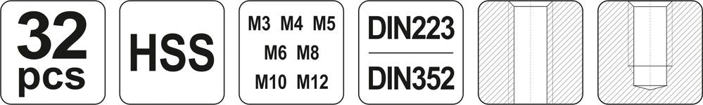 - závitová očka: HSS – M3; M4; M5; M6; M8; M10; M12