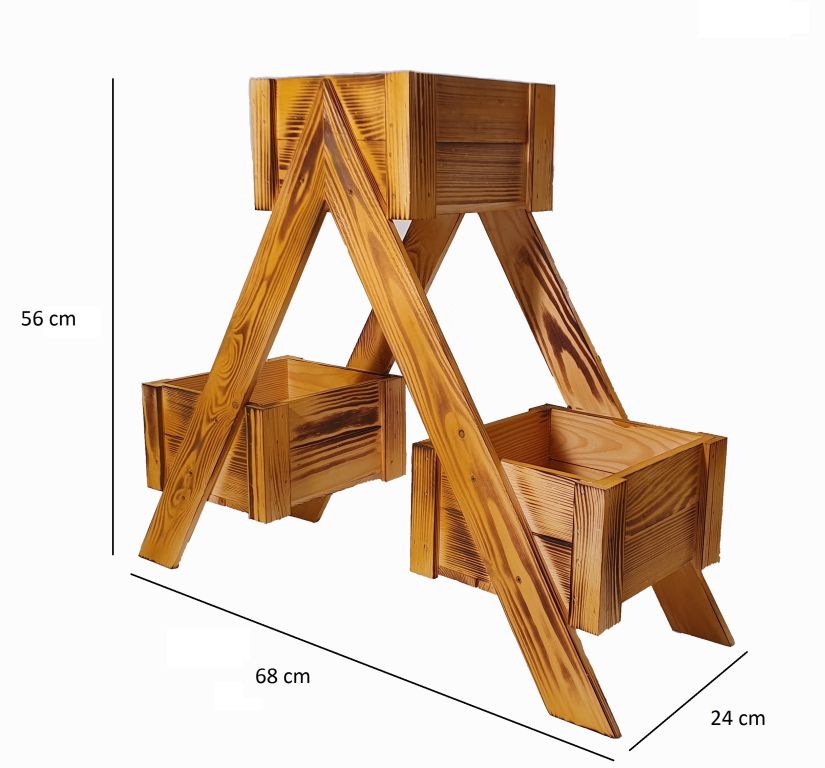 Dřevěný květináč vyrobený ze smrkového nebo borového dřeva včetně povrchové úpravy olejovou lazurou s jemným opálením. Dodáván je smontovaný,takže nepotřebujete žádné nářadí. Dřevo je přírodní materiál, který může praskat a pracovat, tomu nelze zabránit. Výrobek není určen na venkovní použití v zimním období, výrazně se tím zkracuje životnost.