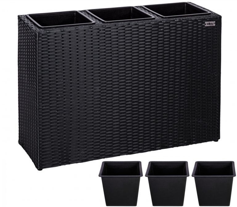 Nádherný stojan na tři květináče je skutečným lákadlem pro váš domov. Stojan s vnitřními květináči je ideální pro výsadbu na zahradě, balkoně nebo terase, lze použít také jako rozdělovač místností. Materiál vás přesvědčí svými vynikajícími vlastnostmi: je odolný vůči povětrnostním vlivům, UV záření, odpuzuje nečistoty a snadno se čistí. Vyjímatelné vnitřní květináče jsou vybaveny uzavíratelným odtokem vody, který zabraňuje přemokření.