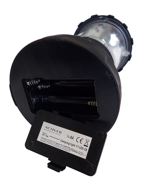Kempingová svítilna s 11 LED diodami má vysokou svítivost a nízkou spotřebu. Svítilna je velmi lehká, může být umístěna na rovné podložce nebi ji lze vhodně zavěsit. Svítilna je pro tyto účely opatřena plastovým držadlem, takže se i snadno přenáší. BATERIE NEJSOU SOUČÁSTÍ SVÍTILNY !