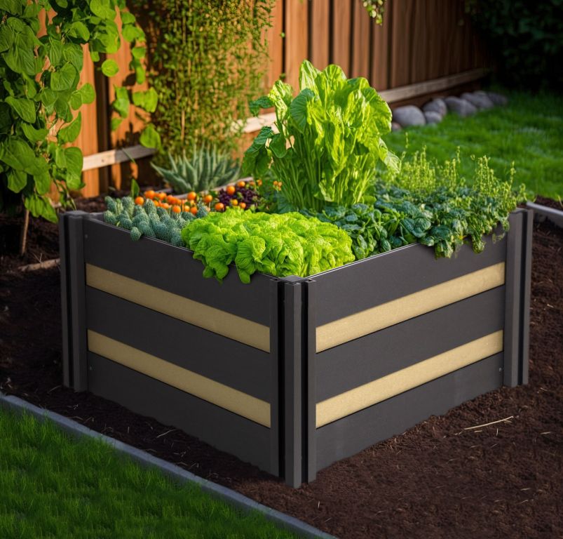 Odolný bezúdržbový vyvýšený záhon Crop Duo s výškou 57 cm s plochou 0,9 m² pro větší úrodu zeleniny i pěstování bylinek nebo květin. Prvotřídní materiál, snadná montáž, vynikající vlastnosti. Česká značka, česká kvalita: Vyvýšené záhony vyrábíme v jižních Čechách a dáváme si na nich opravdu záležet. Záhon Crop Duo je odolný a stálobarevný. Nemusíte se o něj nijak starat, protože je naprosto bezúdržbový. Díky kvalitnímu materiálu, výbornému provedení a snadné montáži tak získáte praktický záhon, který zvýší a zlepší vaši úrodu a bude vaší zahradě slušet. Vyvýšený záhon Crop Duo má k osetí/osázení plochu 0,9 m², stěny jsou silné 2,5 cm a výška vyvýšeného záhonu je 57 cm. Kvalitnější zemina = větší a lepší úroda: Vyvýšený záhon Crop Duo můžete umístit kdekoliv. Na zatravněné ploše i na suché nebo písečné půdě. Vyvýšené záhony Crop Duo mají spoustu předností. K už zmíněnému kvalitnímu a bezúdržbovému materiálu patří i snadná montáž a především lepší úroda. Do záhonu si můžete připravit kvalitnější zeminu, takže pěstované rostlinky, bylinky nebo květy dostávají víc živin a jsou i chráněny před škůdci, jako jsou například slimáci. Teď už vás při plení záda ani kolena bolet nebudou: Jedním z důvodů vysoké obliby vyvýšených záhonů je jejich lepší přístupnost. K práci s rostlinami se nemusíte tolik ohýbat, takže vás nebudou bolet záda či kolena jako při práci s běžnými záhony v půdě. Materiál WPC (Wood plastic components) je směs tvořená z 60 % z dřevitých vláken a ze 40 % z plastu. S pomocí vlivu tlaku a teploty (extrudace) vzniká odolný a bezúdržbový materiál, který je praktický a po všech stránkách vysoce užitkový. Vlastnosti tohoto materiálu dosahují kvalit prken z exotických dřevin a zároveň jsou ale výrazně cenově dostupnější. Vyvýšené záhony a velkoobjemové květináče tak nepotřebují další údržbu nebo nátěry. Oproti klasickému plastu mají zase vysokou stálobarevnost a jsou odolnější vůči teplotním výkyvům. WPC materiál je díky svým vlastnostem vhodný pro použití na místech, kde dochází k působení všech běžných vlivů venkovního prostředí jako je např. vlhko, sluneční záření, déšť, vítr, mráz, atd. Bezúdržbovost – materiál není třeba udržovat nebo ošetřovat pomocí nejrůznějších nátěrů a čistí se jednoduše pomocí vody. Stálost – WPC materiál je probarven v celé hmotě, tudíž nedochází v průběhu času ke změnám jeho barvy. Na rozdíl od dřevěných materiálů nemá různé pohledové vady jako například suky, apod. Životnost – WPC materiál má životnost až 20 let. Nedochází u něj vlivem teplotních rozdílů ke změnám tvaru ani barvy, odolává povětrnostním vlivům a dřevokazným škůdcům.