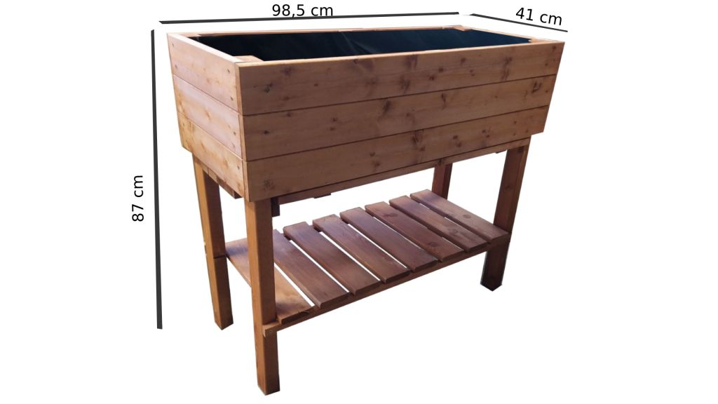 Rádi pěstujete ale vždy Vís trápilo nepříjemné ohýbání a klečení? S tímto záhonem Vám práce půjde snadněji a bez příjemného ohýbání nebo klečení. Je vyroben z 20 mm silného materiálu a nohy jsou silné 40 x 60 mm. Police pro uložení nářadí k pěstování a sadbě. Geotextilie je součást balení produktu a slouží k oddělení zeminy od záhonu. Ze spoda má záhon plastové kluznice pro lepší stabilitu a aby dřevěné nohy nebyly v kontaktu se zemí.