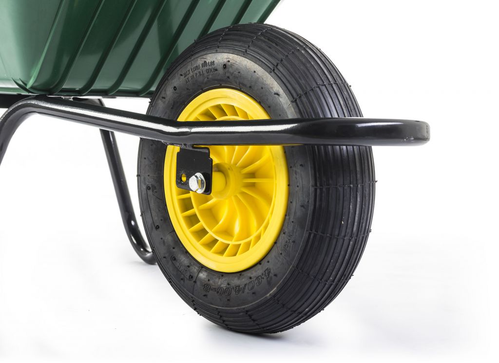 Pro zahradní kolečka se používají dva typy kol – nafukovací a s plnou pneumatikou. Kolečka G21 mají nafukovací kolo s gumovou pneumatikou, které vám významně ulehčí práci s převážením nákladu. Široké nafukovací kolo ujede bez problémů i v nerovném terénu, snižuje otřesy do rukou při jízdě po hrubém povrchu a neboří se do měkké země. Prostě ideální kombinace pro využití na zahradě a kolem domu.