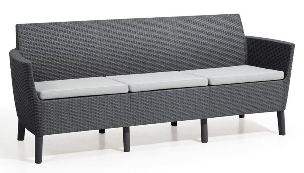 Salemo je naprostá novinka na trhu, která skvěle vynikne v moderním i retro stylu bydlení. Jedná se o elegantní trojmístnou pohovku v imitaci ratanu. Produkt je dodáván s pohodlnými poduškami ve stylových barvách. Lehká a stabilní konstrukce nábytku se skvěle hodí do exteriéru i interiéru. Je velmi snadná na údržbu. Výrobek je vysoce odolný proti UV paprskům a povětrnostním vlivům.
