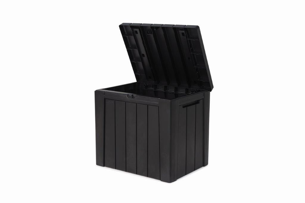 Praktický a moderní úložný box pro uložení věcí doma i na zahradě. Zabudovaný podlahový panel chrání uložený obsah proti vodě, bahnu, prachu a dalším nečistotám. Můžete jej také využít k sezení. Snadno se udržuje a je velmi odolný.