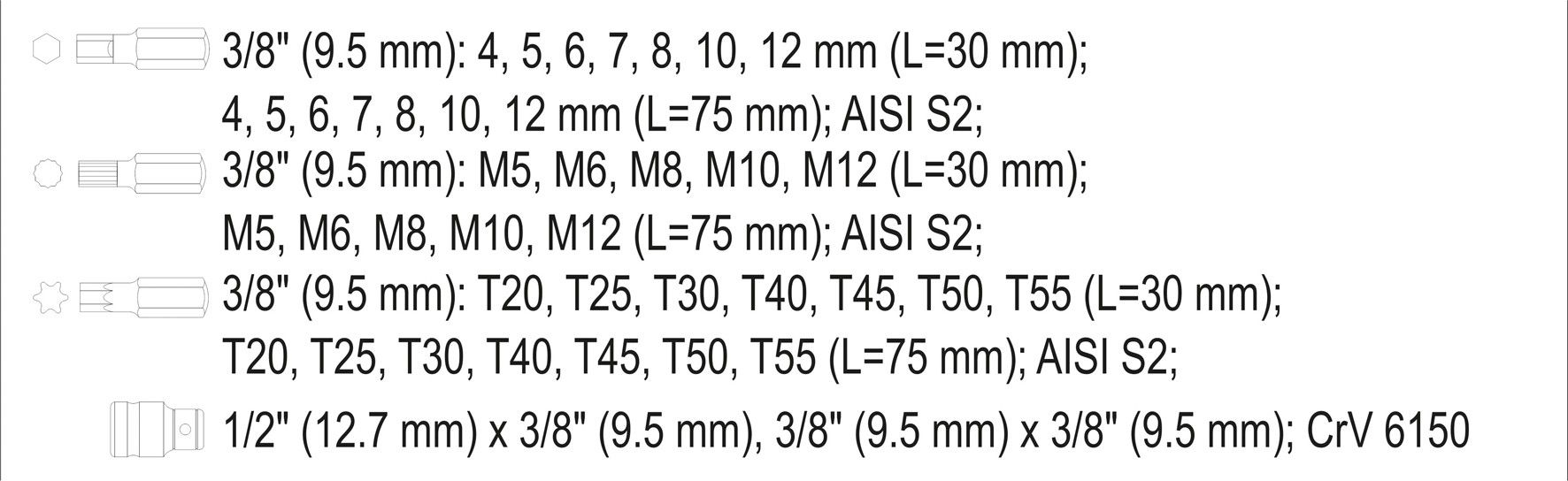 Bity sada 18 ks – TORX T10 – T60mm